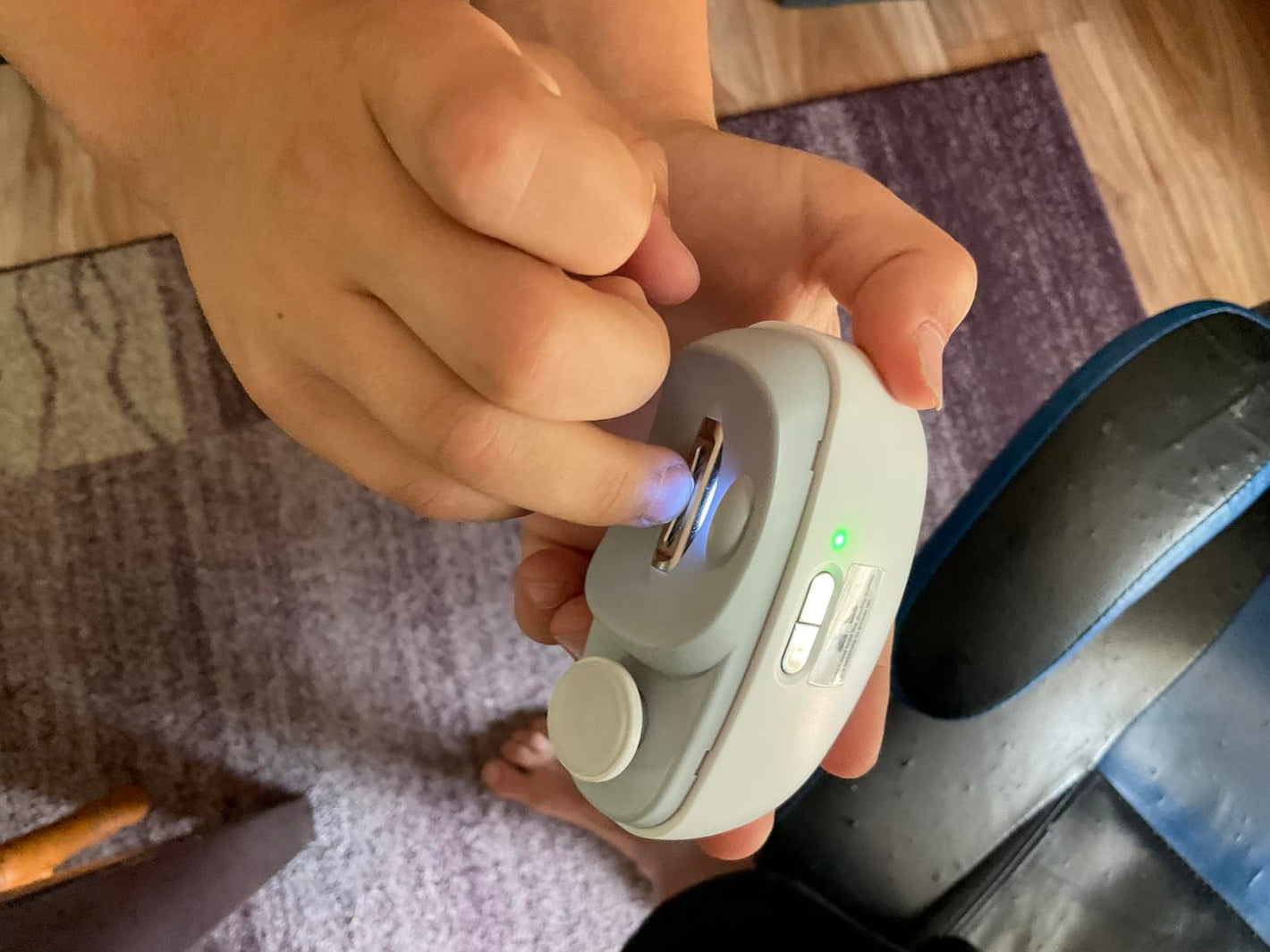 Simply open the nail storage compartment, remove the trimmed nails, and wipe the device with a dry cloth.