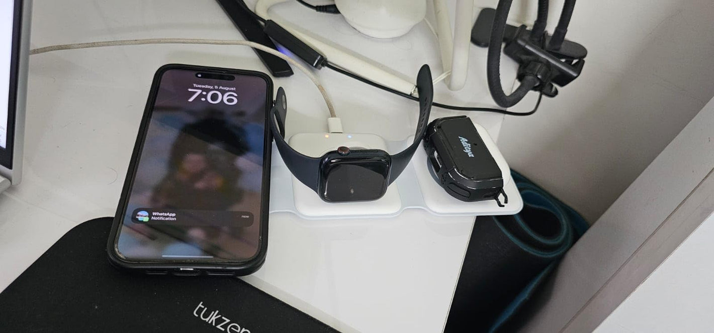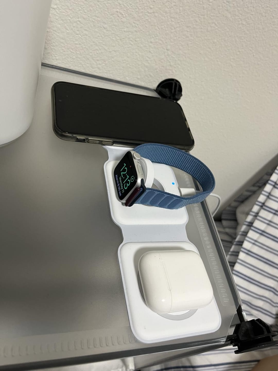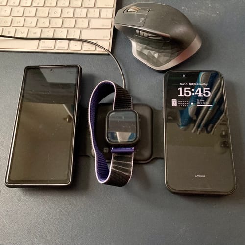Can I charge all three devices (phone, watch, earbuds) at the same time?