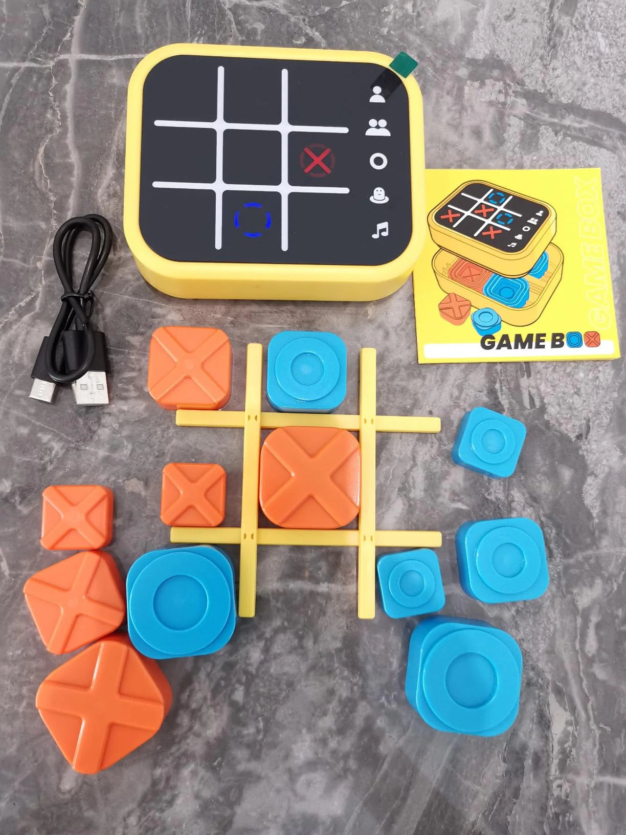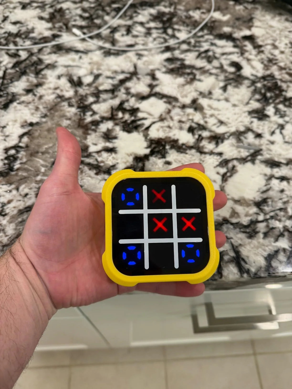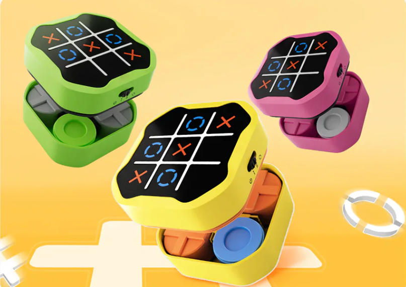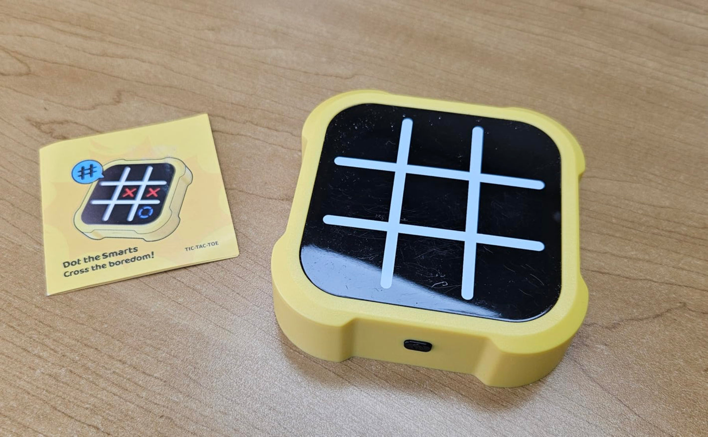 Play Tic-Tac-Toe AI battles, two-player challenges, memory tests, and Whack-a-Mole — all in one device! 🎮
